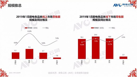 根据奥维云网(AVC)推总数据显示,电热水器线上销额为9.3亿,同比增长34%,线下销额为20.6亿元,同比下滑7.8%。燃气热水器线上销额为5.7亿,同比下滑10%,线下销额为18.9亿,同比下滑16%。线上油烟机销售额为6.1亿,同比下滑8.8%,线下销额为18.3亿,同比下滑16.8%,线上洗碗机销售额为1.4亿,同比增长7.8%,线下2.2亿元同比增长2.5%。