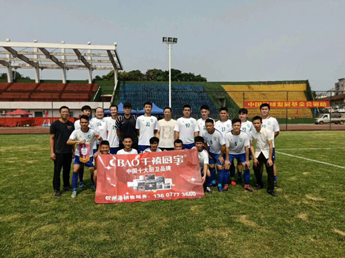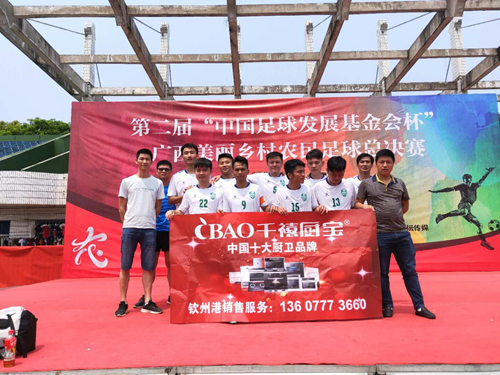 决赛现场,一支身穿蓝白配色运动套装、上衣印着墨绿色千禧厨宝字眼的队伍格外引人注目,这便是由“中国十大厨卫电器品牌”千禧厨宝电器鼎力赞助的钦州港水井坑足球队。他们身穿“千禧厨宝”的战服,英姿飒爽、骁勇善战,以超强实力称霸球场!