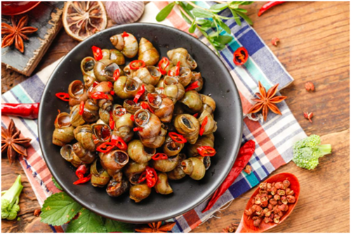 清咸丰年间的《顺德县志》有记:“八月望日,尚芋食螺。”炒田螺,乃是一款经典的中秋菜肴,香辣中带有田螺的鲜味。更有趣的是,用嘴巴吸田螺的食法,使人越吸越来劲,不知不觉地增添了饭桌上的欢乐气氛。
