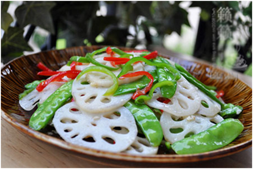 与莲花的“中通外直不蔓不枝”不同,莲藕即使断开亦是丝连,寓情思相牵之意。一道“荷塘月色”,以莲藕为主,搭配数种时令蔬菜,尽显仲秋之景,也让满桌家宴显得荤素得当。