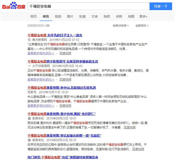 《新浪家居》、《网易家居》、《搜狐网》、《腾讯家居》、《中国品牌网》、《中国品牌招商网》、《中国建材家居网》等数百家网站对千禧厨宝电器进行全年跟踪报道,坚持将品牌的第一手资讯带给经销商与消费者。