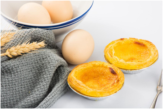 3、把弄好的蛋挞水倒入蛋挞皮内至七分满;