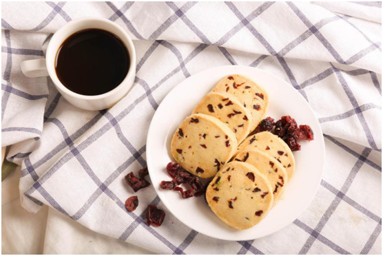 4、后用模具压出形状,放入预热190℃的荣事达蒸烤箱中烤11分钟至金黄略硬,取出完全放凉即可。