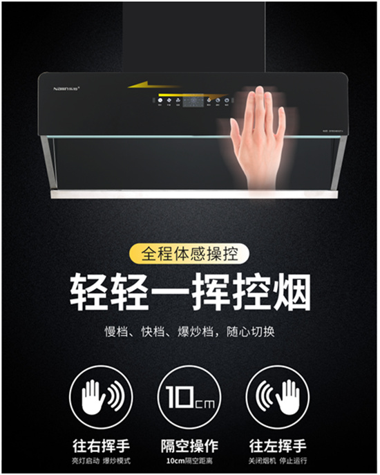 轻轻一挥控烟,慢档、快档、爆炒档,随心切换。