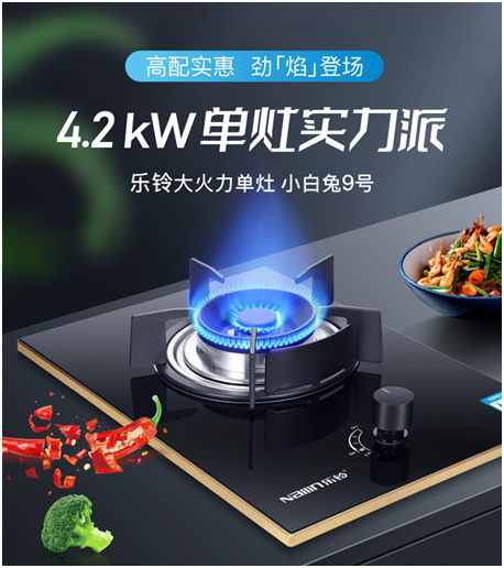 乐铃小白兔9号,机身小巧、台嵌两用,百搭各种厨房空间;搭载4.2kW紫焰猛火,迅猛持久,为中式菜肴提供爆炒所需火候;五档宽频精控火候,随心所欲掌控火焰,满足用户各种烹饪需求。