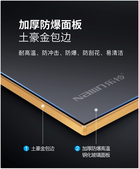 优秀的灶具不仅在功能上能够满足人们的需求,还能在外观上完美满足人们的审美品位。乐铃小白兔9号以加厚防爆面板为亮点,配以“土豪金”包边,完美体现高级感,见证穿越时光而来的永恒品质。而面板的材质为拉丝、玻璃双工艺拼接,易于清洁,将美感与实用性完美结合。