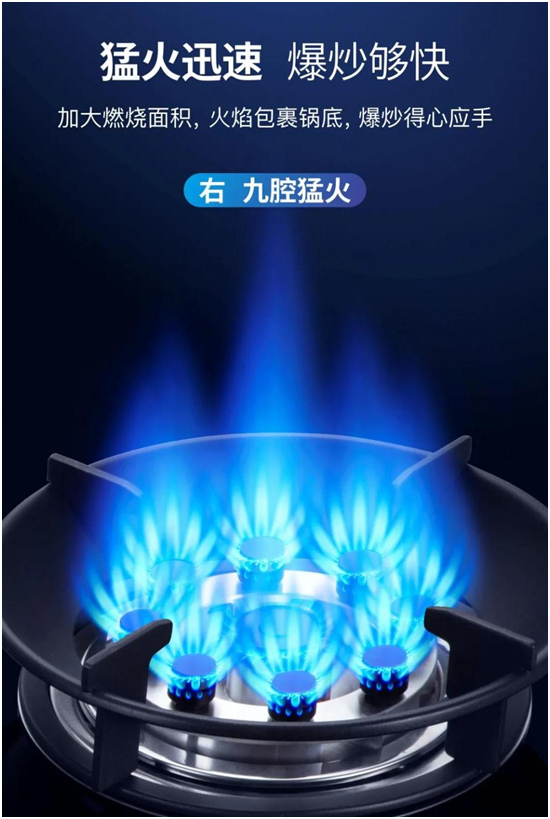九重精控火力,全面提升火域宽度和加热效率,带来高效大火力,轻松满足爆炒所需火力;顶尖的热电偶熄火保护,火焰熄灭自动断气,安全又省心。