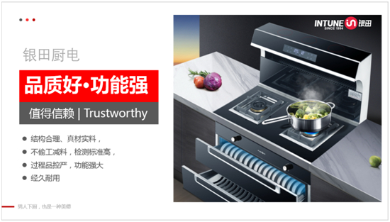经过近几年的稳步发展,银田厨电已经积累了良好的渠道基础和用户口碑。而在发展过程中,银田也一直重视品牌的建设,为了助力更多的终端经销商打开市场,银田以市场导向为坐标,以消费者需求为依据,对全国的品牌战略进行了再度升级。