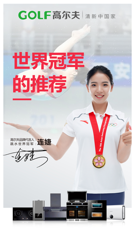 专业、刻苦专研、严格要求一直以来都是运动健儿的正能量形象代名词,连婕女士作为优秀的运动员及跳水世界冠军,曾在各大比赛中多次获得冠军荣誉,并在北京体育大学进行深造,不断挑战自我,将体育精神发挥得淋漓尽致,与高尔夫厨电品牌一直以来遵从的专业专注、创新共赢的企业精神不谋而合,强强联手,如虎添翼!