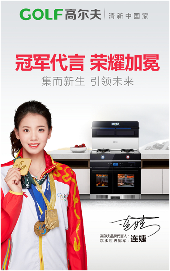 官宣啦! 高尔夫厨电在此宣布,正式签约跳水世界冠军、“国际级运动健将”连婕女士成为高尔夫厨电品牌代言人,冠军的加盟将给品牌的发展与布局注入全新力量,为高尔夫厨电品牌建设硬核赋能。
