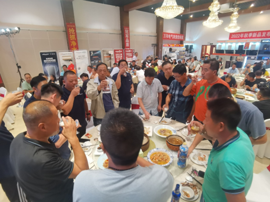银田厨电卫浴本次首场开盘会议得以圆满成功,离不开这样一群人:他们奔波劳碌,毫无怨言;他们不断超越,勇攀高峰;他们是银田总部与扬州啸飞团队,更是家人。在这场活动中,他们以智慧指引方向,以豁达引领团队,为2022年银田厨电卫浴品牌的蝶变努力奋战,创造更多的奇迹,开辟更多的可能。在庆功晚宴上,他们一起举杯共饮,是对自己努力终有收获的肯定,更是对所有辛勤付出者的感谢。