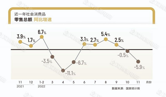 相对于2020年的前低后高、2021年的前高后低,2022年的运行曲线则是高低起伏。市场零售除二、八月份增长之外其余月份均处同比受挫的局面,即便是有双11大促的十一月份也未能幸免。不言自明,这恰与2022年的疫情密切相关。