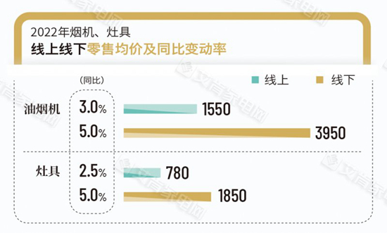 从油烟机线下零售来看,2022年烟机线下均价约为3950元,同比增长约5%;线上均价约1550元,同比增长约3%。灶具线下均价约1850元,同比增长接近5%;线下均价约为780元,同比增长约2.5%。(如图)