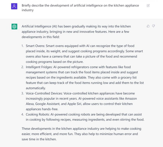 人工智能对厨电行业的影响有哪些?ChatGPT如何回答!
