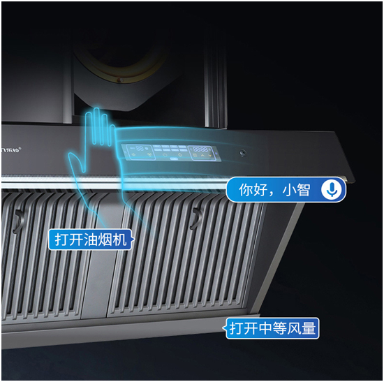 在智能方面,乐铃吸油烟机搭载智能手势控制,无需触碰油烟机,智能隔空感应,挥手即可开启、调节、关闭油烟机,轻轻一挥即可告别油烟,真正解放双手,不仅能让母亲尽情享受手势智控带来的烹饪乐趣,也不用担心油污导致操控面板的触控不灵敏。