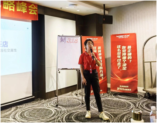 乐铃市场部部长陈璐瑶介绍了如何利用自媒体平台为乐铃电器吸引更多客流。她提出了一种全新、易于复制的营销模式——【妃子笑】,旨在帮助终端门店更好地利用新媒体工具,提升品牌曝光度和销售业绩。