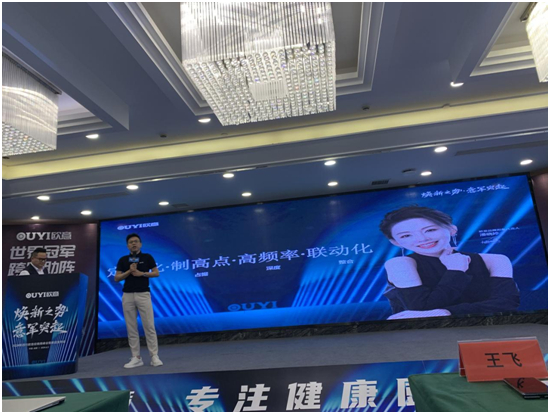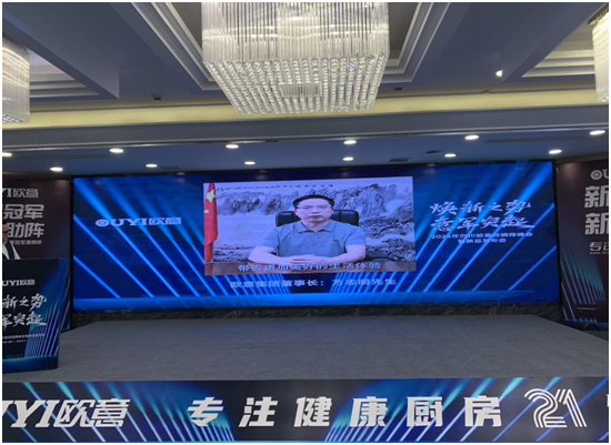 广东欧意公司总经理王飞的致辞则更加深入地剖析了当前厨电市场的现状与挑战,他提出了一系列针对性的战略措施,旨在帮助经销商们更好地应对市场变化,抓住新的商业机遇。王总的发言不仅展现了欧意厨电对市场动态的精准把握,更彰显了其在行业中的领导地位和责任担当。
