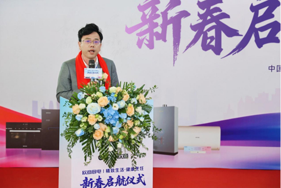 广东欧意智能科技有限公司总经理王飞先生在此次仪式现场发表了以“欧意:焕新启航,从心出发”为主题的讲话,他表示,“焕新启航,从心出发”,是欧意厨电在新时代背景下的坚定承诺和行动指南。自2003年创立以来,欧意厨电始终秉持着为消费者提供高品质、智能化厨房产品的初心,不断追求卓越,勇于创新。因此,我们致力于通过“以旧换新”战略,为消费者带来更加便捷、舒适、智能的厨房新体验。