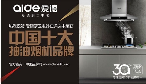 爱德厨卫专注厨房30年 荣获“中国十大抽油烟机品牌”