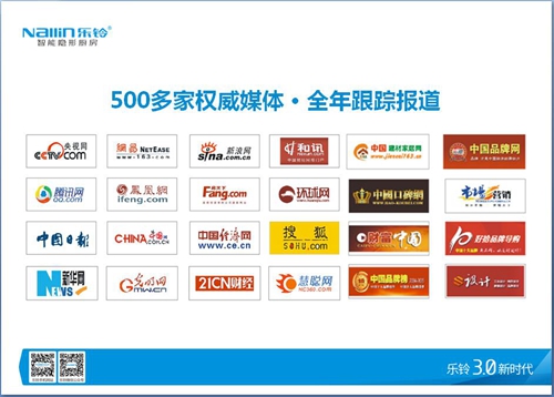 据了解,为了提高品牌知名度、美誉度,乐铃与著名策划团队北京盛世经典品牌营销策划有限公司形成战略合作伙伴,并在现场进行签约仪式。全新布局,面向全国,盛世经典对乐铃资源进行全面整合,制定了一套详细的品牌营销方案。乐铃在2017里,将会与《销售与市场》、《中国企业家》、《中国品牌经理人》、《财经》、《中国人物周刊》、《中国品牌周刊》、人民日报(人民网)、《网易》品牌家居、《中国500强》品牌招商、凤凰卫视《凤凰网》、新浪、搜狐、网易、中国建材家居网、中国品牌网、百度、360等近500家媒体,进行品牌深度传播。全方位提高乐铃品牌知名度、美誉度。