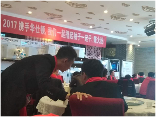 于总监振奋人心的讲话得到了现场各大经销商们的热烈掌声。从每个人的脸上我们不难看出,于总监的演讲不仅鼓舞了经销商们,重要的是给现场经销商们带来了更坚定的信念。在之后的订货环节里,各经销商们积极踊跃打款,更有“抓钱”活动得到了众多经销商们的青睐,现场气氛火爆,将本次华仕顿品牌推进会推向高潮。