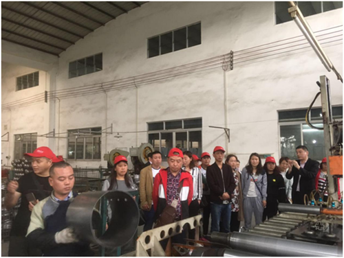 热烈的迎接之后,在企业参观中,由华仕顿于总亲自带团,领导山西家人们逐一参观公司环境、展厅、生产车间,介绍新品、生成流程等。于总全程陪伴家人们,在旁一一传道解惑。