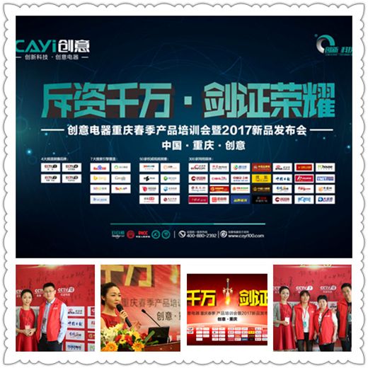 4月22日,2017创意营销新思路培训会暨新品发布会于重庆阳光大酒店围绕“携手创意,共赢未来”主题开展,广东创意电器有限公司总经理、重庆营销中心及重庆周边经销商出席会议,得到了各大媒体的高度关注,对会议进行全程实时报道。
