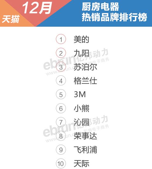 2014年12月天猫十大厨卫电器品牌热销排行榜