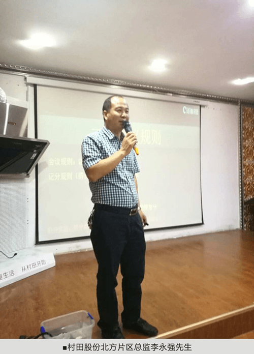 紧接着,伴随着一阵热烈的掌声,村田股份北方片区总监李永强先生宣布河北区域夏日送清凉全省联动促销活动正式启动,期间,李总对促销活动重心及突破口做详细的讲解。并表示,本次促销活动规模大、辐射广、影响力大,希望大家能与公司一起携手做好本次活动,鼓足干劲,为目标矢志不渝,勇攀高峰,确保各终端门店销量有着突飞猛进的成绩,作为村田人,一定要锁定目标不放松,为本次全省联动促销活动奋斗。