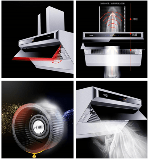 迅速把油烟吸入笼烟腔里。