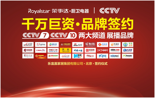 乐宜嘉家居集团有限公司旗下的荣事达厨卫电器与中国中央电视台达成合作,隆重在京举行签约仪式,这意味着荣事达厨卫电器的品牌传播迈入了一个新时代。今年,荣事达厨卫电器品牌将登陆央视人气频道进行品牌展播,通过央视这个国家级的媒体平台把荣事达厨卫电器的品牌文化传播到千家万户!
