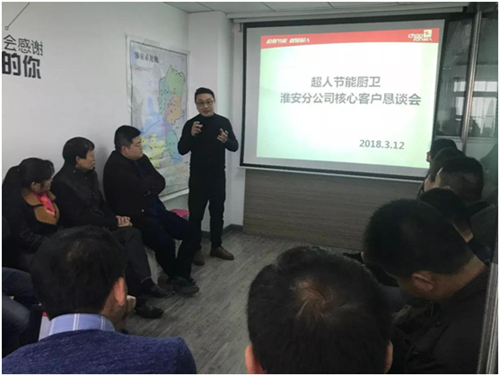 3月12日,超人节能厨卫淮安分公司核心客户恳谈会暨新品发布会隆重召开。招商部长李浩伟、超人商学院副院长林小龙、江苏区域经理周斌、淮安超人总经理徐屹及淮安地区分销商参与了此次会议。会议现场最高潮莫过于大家分享淮安超人8岁生日蛋糕。据了解,此次发布的新品引起到场分销商强烈兴趣,现场订货达48万元,同时,12位核心客户与淮安超人达成战略合作关系,获得重点帮扶政策。