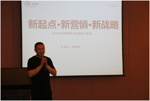 随后,为使现场家人们更清晰地了解斯特厨电在2018年中将会做出哪些改变,斯特厨电营销总监韩总上台做了“新思路、新营销、新战略”的主题演讲。韩总首先对2017年斯特厨电在整体运营中存在的问题进行了具体分析,并针对相关问题给出了解决方案;随后,韩总指出,在新的消费时代下,斯特厨电不仅要做到与时俱进,更要主动出击,赶超潮流!对此,斯特厨电2018“新思路、新营销、新战略”品牌规划全面落地,一个更具远瞻性、更符合市场、更懂消费者的斯特厨电正朝着我们走来!