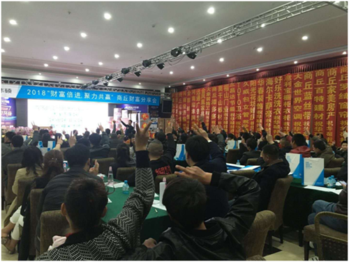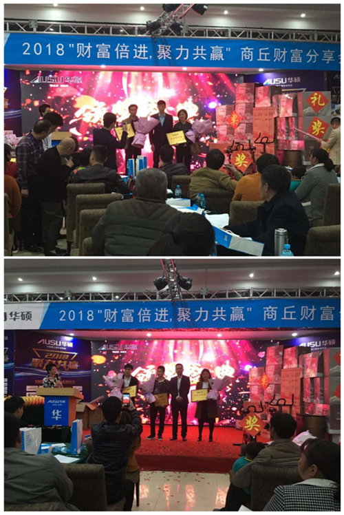 2018年4月15日,河南商丘明锦大酒店内“张灯结彩”,人头攒动,以科技蓝为主色调的布景相互辉映,座无虚席的会场在此交织成一幅科技满满而又温情四溢的画面,广东华硕厨房设备有限公司“财富倍进 聚力共赢”商丘站财富峰会隆重拉开帷幕。