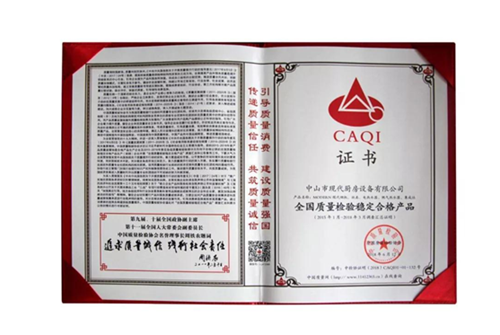 质量强,则企业强;企业强,则国家强。2018政府工作报告中23次讲到质量,并明确提出“进行一场中国制造的品质革命”。现代厨卫积极响应国家号召,以质量为本,用心做好每个产品,对消费者负责,对社会负责!故此,现代厨电也十分荣幸地获得国家质检总局和中国质量检验协会颁发的“全国质量检验稳定合格产品”的荣誉。
