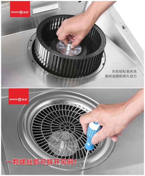 此外,雅凰JS72油烟机采用了下层玻璃采用挂式,让消费者可以更简单地进行拆卸,而智能蒸汽清洗技术的引用,则使得雅凰JS72油烟机可以通过高温高压蒸汽烟机内部的叶轮以及油网进行360度全方位清洗,彻底清除吸油烟机内部油污,并消灭病菌,保持烟机持久动力,吸烟能力达到百分之90以上,彻底让我们告别了与厨房油烟作伴的时代,让我们不用再为了油烟机的清洗而烦恼!