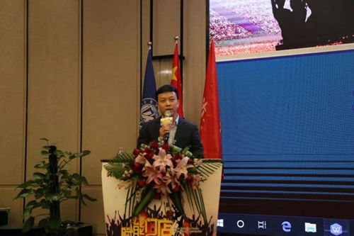 ▲卡米亚瓷砖总经理李丹锋宣讲瓷抛砖战略