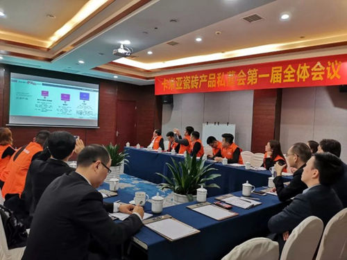 第一届卡米亚瓷砖产品私董会第一次全体会议同步召开,会议以“卡米亚瓷砖2019年产品研发方向”为主题。