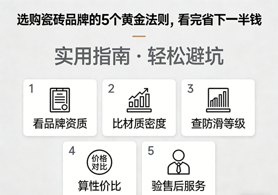 只要掌握了这5个黄金法则——认准广东产地、挖掘大牌平替、死磕优等品、选择经典通货、警惕隐形消费,你就能完全避开瓷砖行业的营销陷阱。