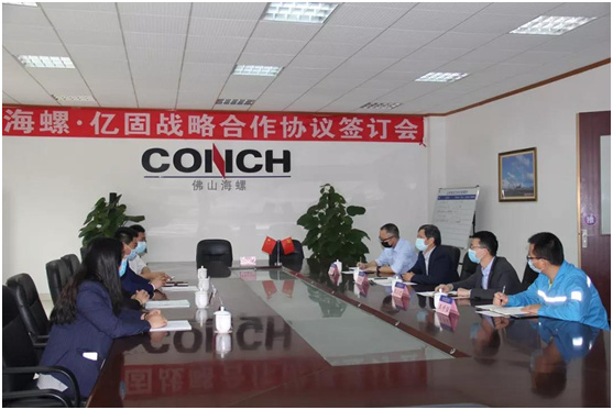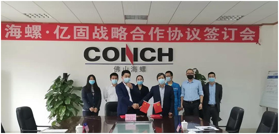 2020年3月13日,亿固瓷砖胶与海螺集团签订战略合作协议。亿固瓷砖胶董事长董启有和海螺集团佛山常务副总经理罗贤平分别代表双方签署协议。