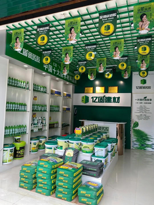 “中国壁安粘贴系统领航品牌”亿固瓷砖胶,这些年发展迅猛,目前在全国已经超过1000家专卖店。