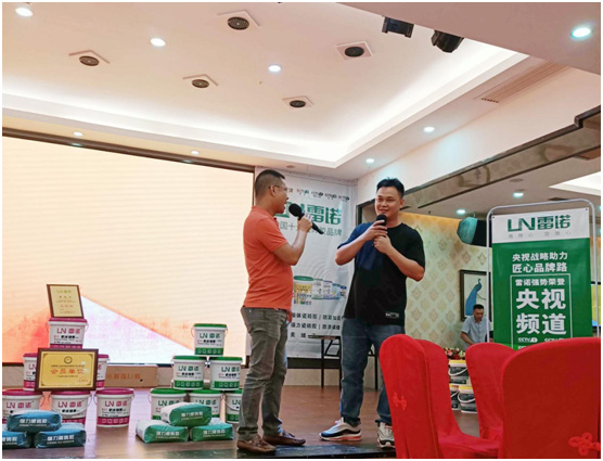 一番激动人心的分享后,雷诺瓷砖胶杨总经理上台致欢迎辞,感谢大家一直以来对雷诺的支持和厚爱,表达雷诺愿意和大家一起共赢发展的意愿。随后杨总对雷诺企业及品牌展开了介绍,雷诺瓷砖胶系列产品卓越的品质更是获得了现场热烈的掌声回应。