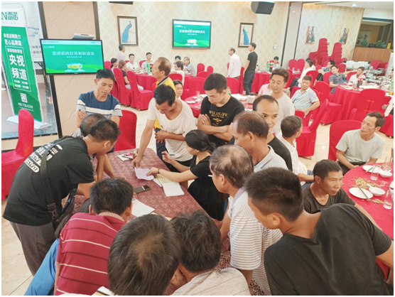 本次雷诺瓷砖胶茂名答谢联谊会,效果远远超过预期:现场400多名参会装修师傅,其中有350多名加入雷诺会员,享受一年期的会员优惠政策;现场订货金额超50万,装修师傅异常踊跃,3本订货单瞬间用完,到最后只能用白纸写单。