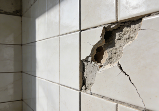 墙面地面有灰尘、油污、积水,或表面不平整,水泥砂浆无法紧密粘结瓷砖,就会形成空鼓。比如老房墙面起砂,未铲除直接贴瓷砖;地面有高低差,找平后未干透就铺砖,都会导致基层与瓷砖间"有空隙"。