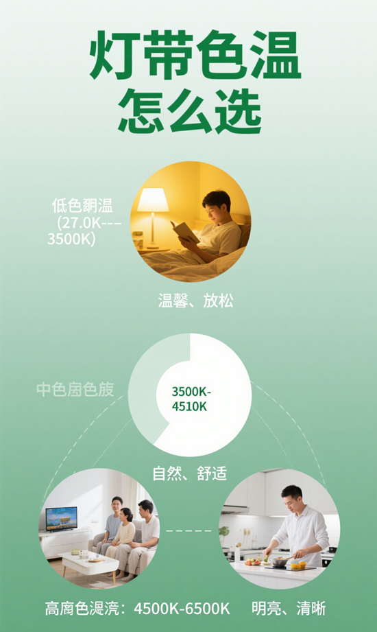 科学选型灯带色温,本质是在光与健康、功能与美学之间寻找平衡点。通过理解技术参数背后的设计逻辑,结合自身使用场景,消费者完全可以选择到既专业又具性价比的照明解决方案。