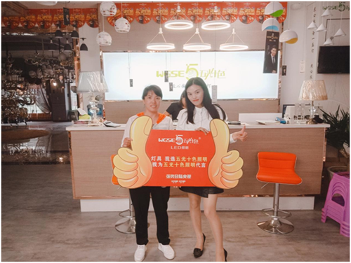 在见识到五光十色品牌之优越性后,刘总在翻修雅逸居长葛旗舰店时,仍然选择了五光十色照明的产品,装修完成后,效果出乎意料。现在的刘总在卖壁布的同时,也成为了五光十色的品牌宣传员,刘总对五光十色照明的一句话:五光十色,不仅让生活更出色,同样让事业更出色!