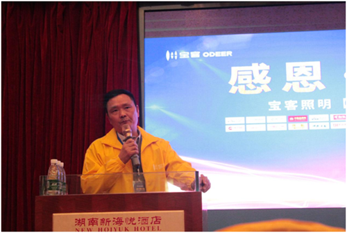 会上,宝客照明湖南运营中心总经理龙正清先生上台发表了“12年如一日,不忘初心”的主题演讲。现场嘉宾无一不露出坦诚的微笑,微微颔首,对龙总所表达的发展理念及观点表示认同。可见,宝客照明在市场、行业中都是一个有口皆碑的民族品牌!