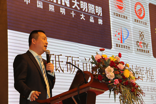 随后,大明照明董事长岳强先生就“行业趋势及大明发展战略”主题展开演讲。岳董事长对照明行业入木三分的分析让现场嘉宾都惊叹不已,能拥有如此深厚的见解想必其定是扎根照明行业多年的大咖。