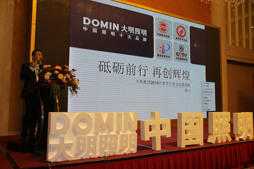 首先,由大明照明总裁阮飞先生上台致欢迎辞并围绕“大明照明经营战略”做分析讲解。
