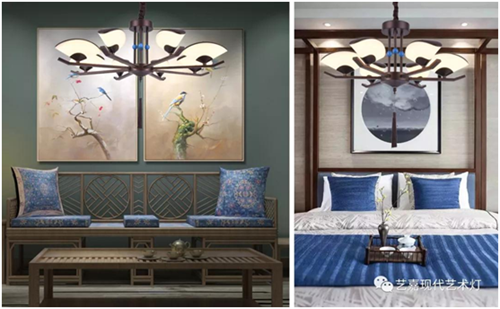 君悦系列,由吊灯、吸顶灯、台灯、落地灯组成,分10+5头、6头、8头、台灯、落地灯以及吊吸两用款式组合而成,适用于现代中式的装修风格,不同户型与楼层层高也同样实用。